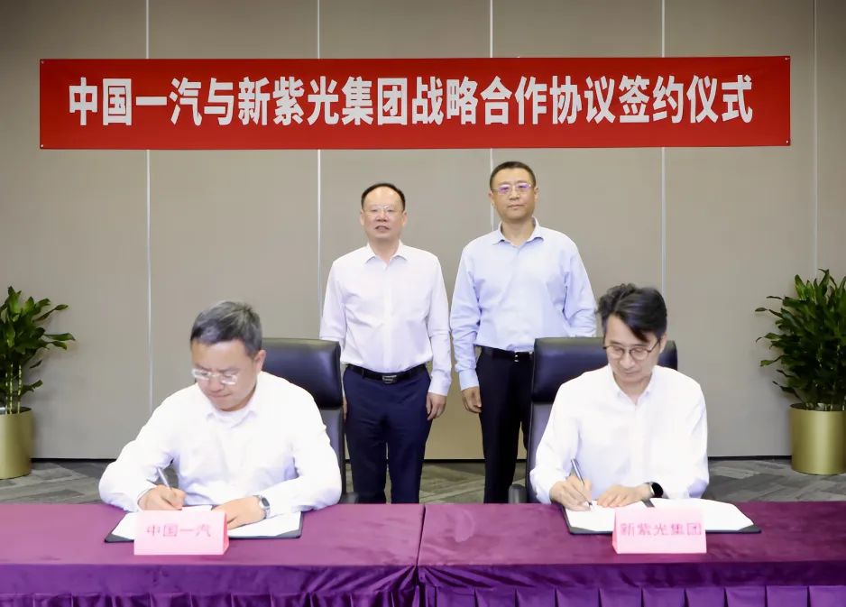 5月16日,新紫光集团与中国一汽在京签署战略合作协议 91香蕉,新紫光集团董事长李滨,中国一汽董事长,党委书记邱现东,共同出席见证协议的签署,并就推动战略合作落实落地进行深入交流,新紫光集团联席总裁兼紫光智行董事长陈杰,中国一汽党委常委,副总经理高璞,作为双方代表进行签约。